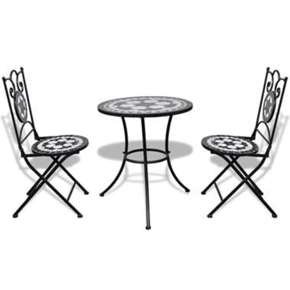 Geef een romantisch tintje aan je tuin, terras of balkon met deze mozaïek bistroset. Aan deze decoratieve, maar functionele tuinset kan je gezellig kletsen met vrienden en een drankje drinken.