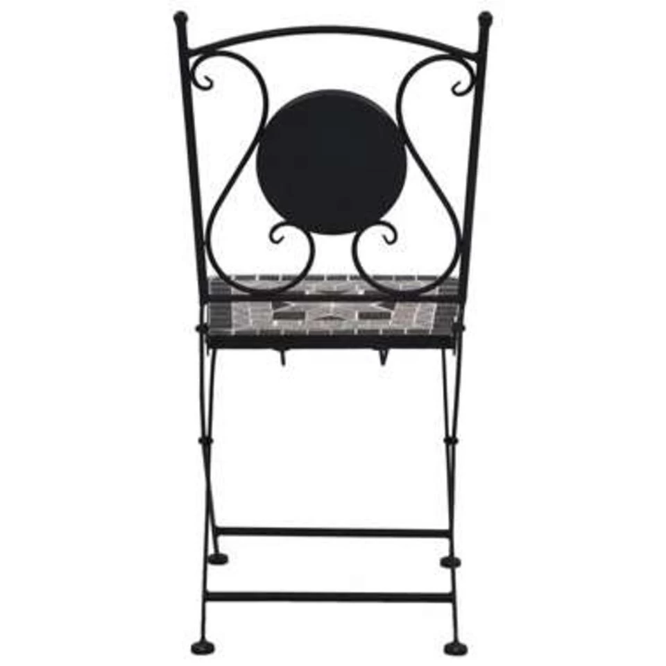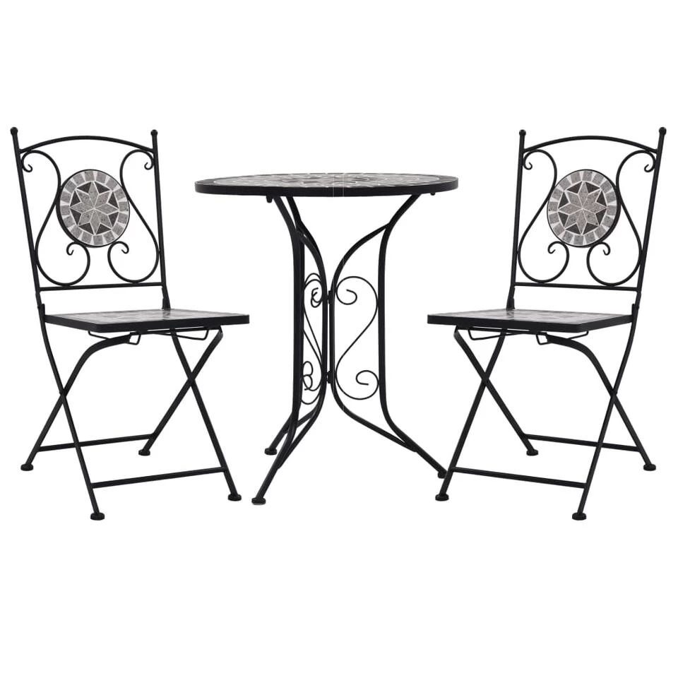 Dankzij het sterke, gepoedercoat ijzeren frame en de keramische tegels zijn onze tafel en stoelen stevig, duurzaam en gemakkelijk schoon te maken.