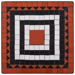 - Materiaal: gepoedercoat ijzeren frame en keramische tegels op zittingen en tafelblad