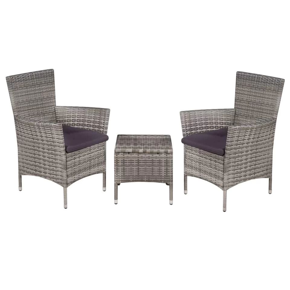 De levering bevat 2 stoelen (inclusief 2 zitkussens) en 1 salontafel. De bistroset is eenvoudig te monteren.