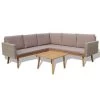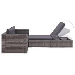 Deze poly rattan bankenset, bestaande uit 2 hoekbanken, 1 ligbed en 5 kussens, is een stijlvolle loungeset voor je tuin of terras.