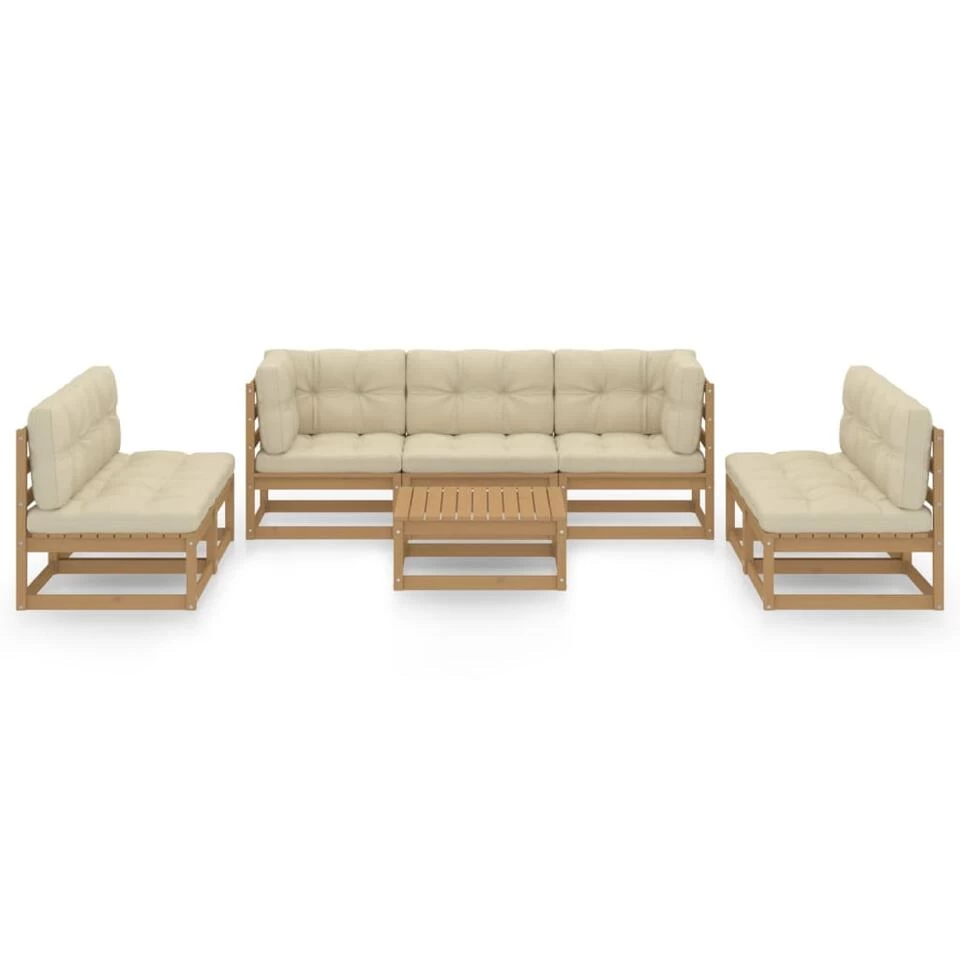 De set is gemaakt van massief grenenhout, waardoor hij stevig en stabiel is. De kussens bieden extra comfort. Je kunt hem combineren met andere modulaire segmenten om zo je eigen persoonlijke loungeset samen te stellen!