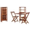 De tuinset is gemaakt van hoogwaardig acaciahout, een tropisch hardhout dat waterbestendig is en vele jaren meegaat. De olieafwerking is makkelijk schoon te maken met een vochtige doek. De tafel en stoelen kunnen worden ingeklapt, zodat ze ruimte besparen wanneer ze niet worden gebruikt.