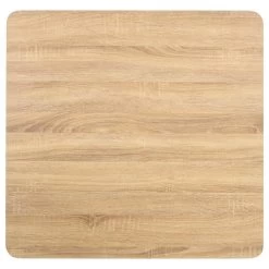 Het tafelblad is gemaakt van MDF met houtnerfpatroon en wordt ondersteund door een stalen poot en basis. Hij is gemakkelijk schoon te maken met een vochtige doek. Gebruik de tafel als aanvulling op je interieur, restaurant, koffiebar of lunchroom.