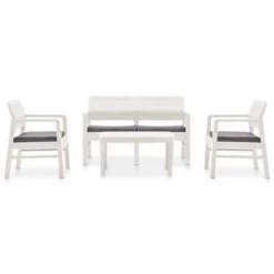 Deze comfortabele tuinstoel is gemaakt van duurzaam, weerbestendig en onderhoudsvrij kunststof, dat slijtvast is en geschikt is voor dagelijks gebruik. De dikke, gewatteerde zit- en rugkussens zorgen voor extra comfort tijdens het loungen. Dankzij het lichtgewicht ontwerp kun je hem gemakkelijk verplaatsen. Er is geen montage vereist.