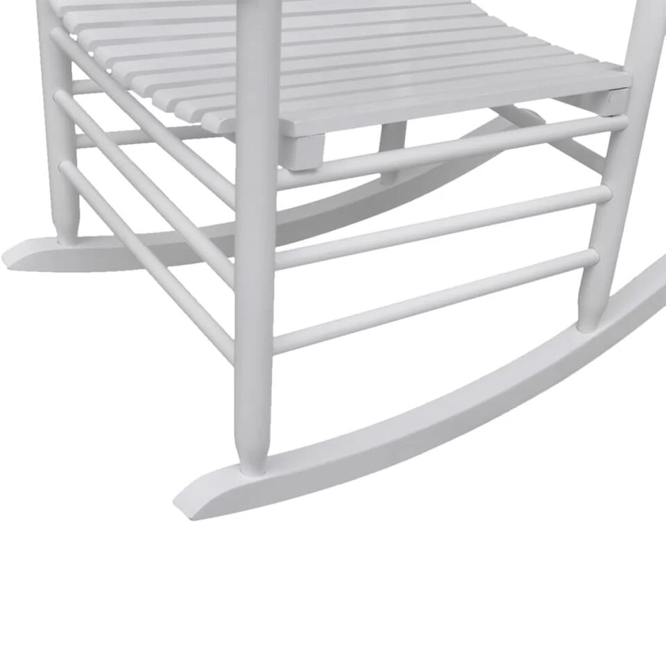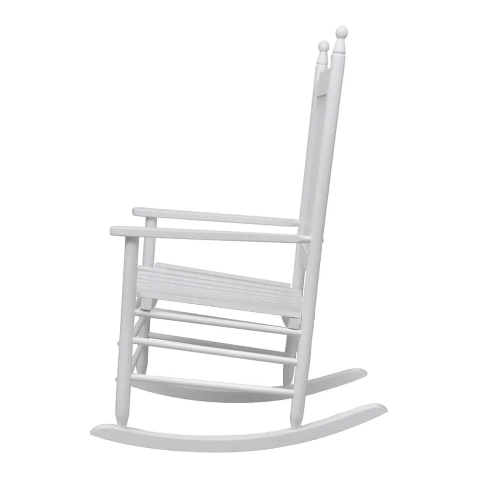 Ontspan in onze vintage-geïnspireerde massief houten schommelstoel. Hij heeft een elegant en tijdloos ontwerp en is een praktische en klassieke toevoeging aan elk interieur.