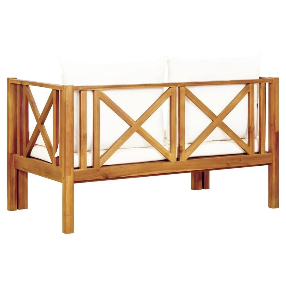 Deze bank is gemaakt van massief acaciahout, waardoor hij stabiel en duurzaam is. Het geoliede oppervlak is eenvoudig schoon te maken met een vochtige doek. Deze multifunctionele zitbank kan worden uitgetrokken om als ligbed te gebruiken. Hij is perfect om heerlijk uit te rusten met een kopje koffie. Bovendien zorgen de dikke kussens voor een comfortabele zitervaring.