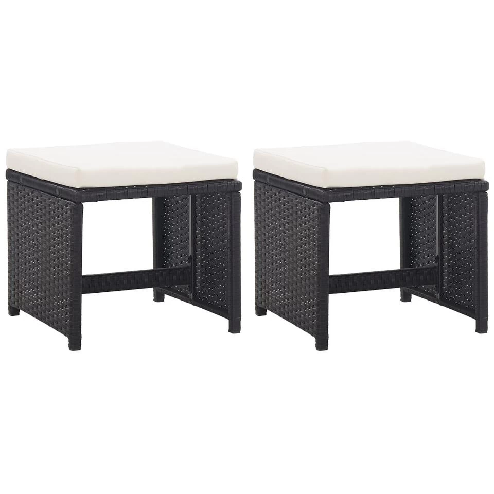 De onderhoudsarme constructie, gemaakt van gepoedercoat staal en poly rattan, zorgt voor stevigheid en duurzaamheid en is bestand tegen scheuren en slijtage. De dikke kussens verhogen het zitcomfort. Dankzij de hoogte zijn de tuinkrukken ook te gebruiken als voetenbankjes.