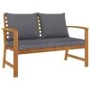 De bank is gemaakt van massief acaciahout dat slijtvast en zeer duurzaam is. Het grote opbergvak onder de zitting biedt voldoende ruimte om verschillende huishoudelijke artikelen binnen handbereik en netjes geordend te houden. De armleuningen en de rugleuning, evenals het inbegrepen zitkussen, dragen bij aan het zitcomfort van de bank. Montage is eenvoudig.