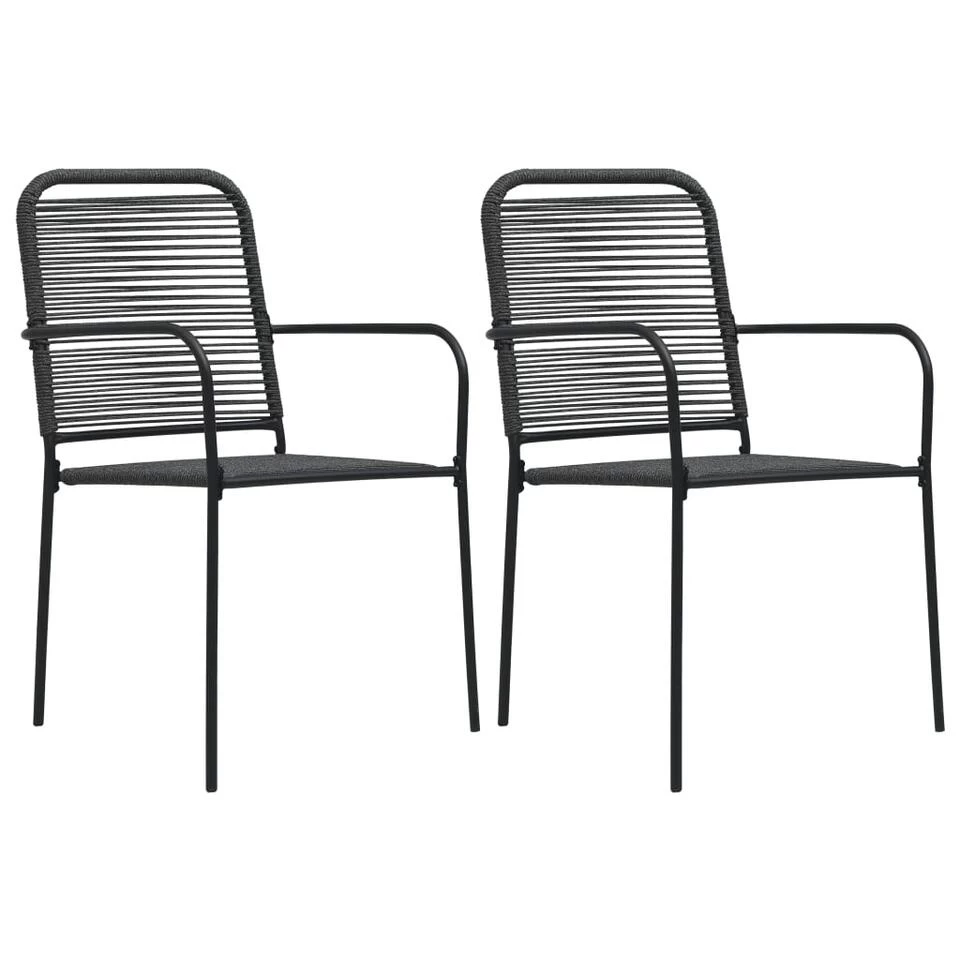 Deze stoelenset is gemaakt van katoenen touw dat geweven is over een gepoedercoat stalen frame. Hij is stabiel en bestand tegen slecht weer en uv-stralen.