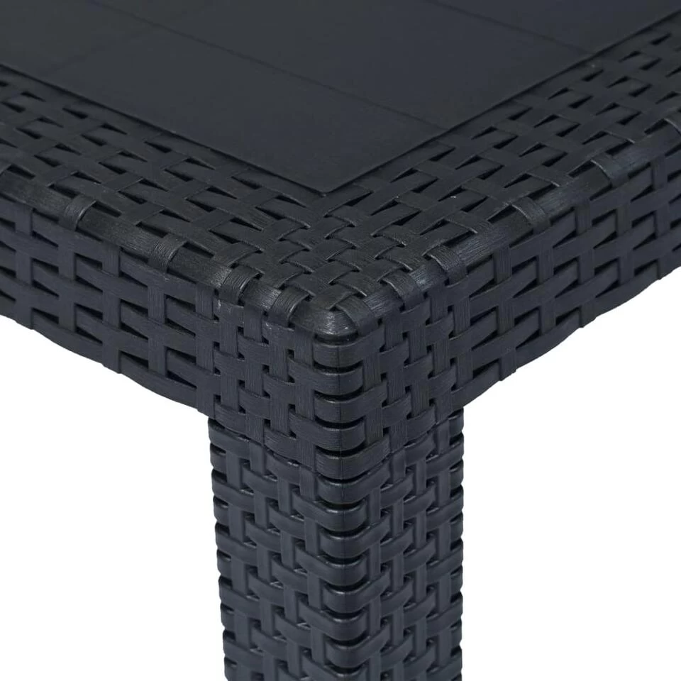 De eettafel in rattan-look is gemaakt van massief kunststof, waardoor hij duurzaam, sterk en weerbestendig is. Bovendien is hij gemakkelijk schoon te maken. Zijn rattan-look ontwerp voegt een vleugje natuurlijke charme aan je leefruimte buiten. De tuintafel is ook lichtgewicht en daardoor gemakkelijk te verplaatsen.