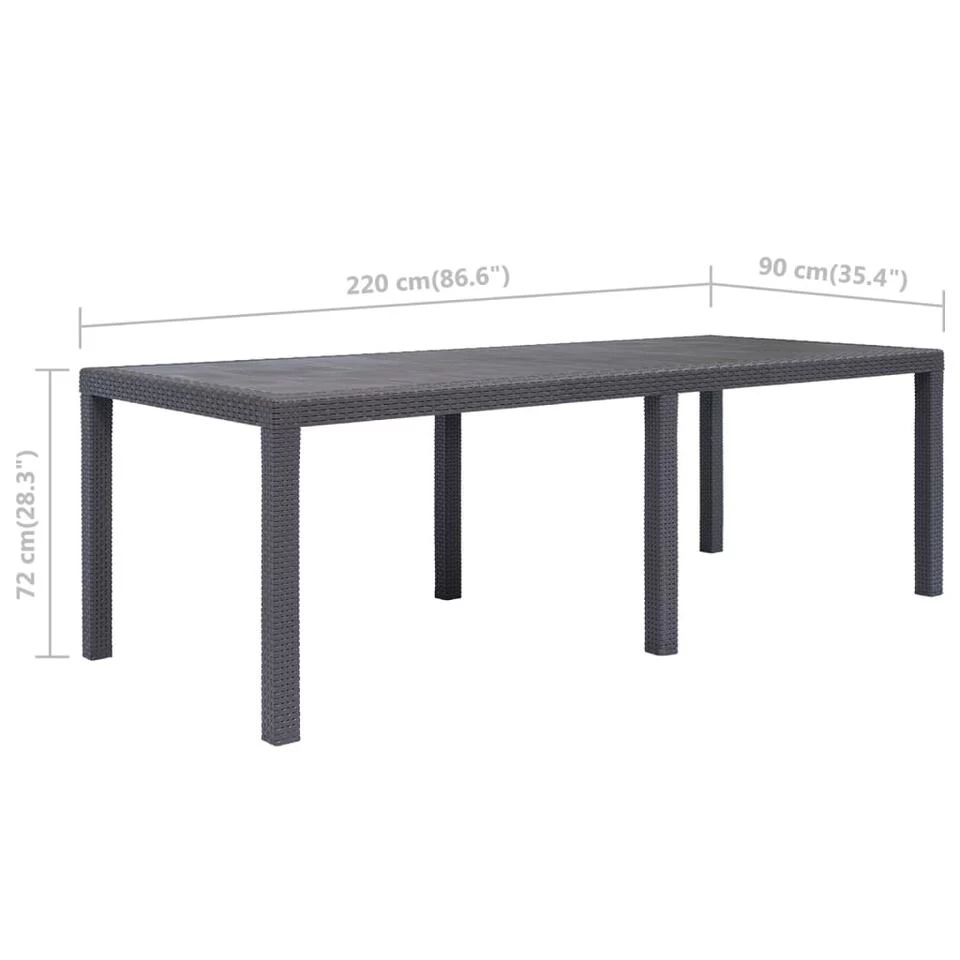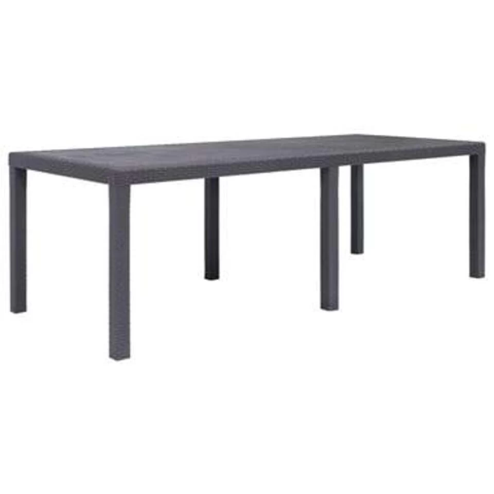 De eettafel in rattan-look is gemaakt van massief kunststof, waardoor hij duurzaam, sterk en weerbestendig is. Bovendien is hij gemakkelijk schoon te maken. Zijn rattan-look ontwerp voegt een vleugje natuurlijke charme aan je leefruimte buiten. De tuintafel is ook lichtgewicht en daardoor gemakkelijk te verplaatsen.