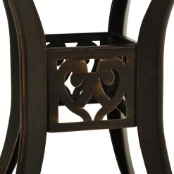 Deze theetafel is gemaakt van gietaluminium en is dus stabiel, stevig en ideaal voor dagelijks buitengebruik. Het tafelblad heeft een uniek hol design en is geschikt voor het plaatsen van drankjes, snacks en andere spullen. De vier afzonderlijke poten zijn zeer stabiel. Bovendien heeft deze terrastafel een parasolgat zodat je buiten kunt genieten terwijl je beschermd bent tegen zon en regen.