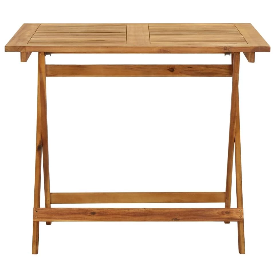 Deze tafel is gemaakt van massief acaciahout met een natuurlijke olieafwerking, die weerbestendig en duurzaam is. Elke stap van het proces wordt met de grootste zorg uitgevoerd, of het nu polijsten of lakken is. Het stevige tafelblad met gelat ontwerp is eenvoudig schoon te maken. De tafel kan gemakkelijk ingeklapt worden.