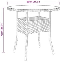 De tuintafel heeft een gepoedercoat stalen frame en is omwikkeld met poly rattan, waardoor hij zeer duurzaam is. Daarnaast is het tafelblad gemaakt van gehard glas, waardoor het eenvoudig schoon te maken is. Dankzij de lichtgewicht constructie is de buitentafel gemakkelijk te verplaatsen.